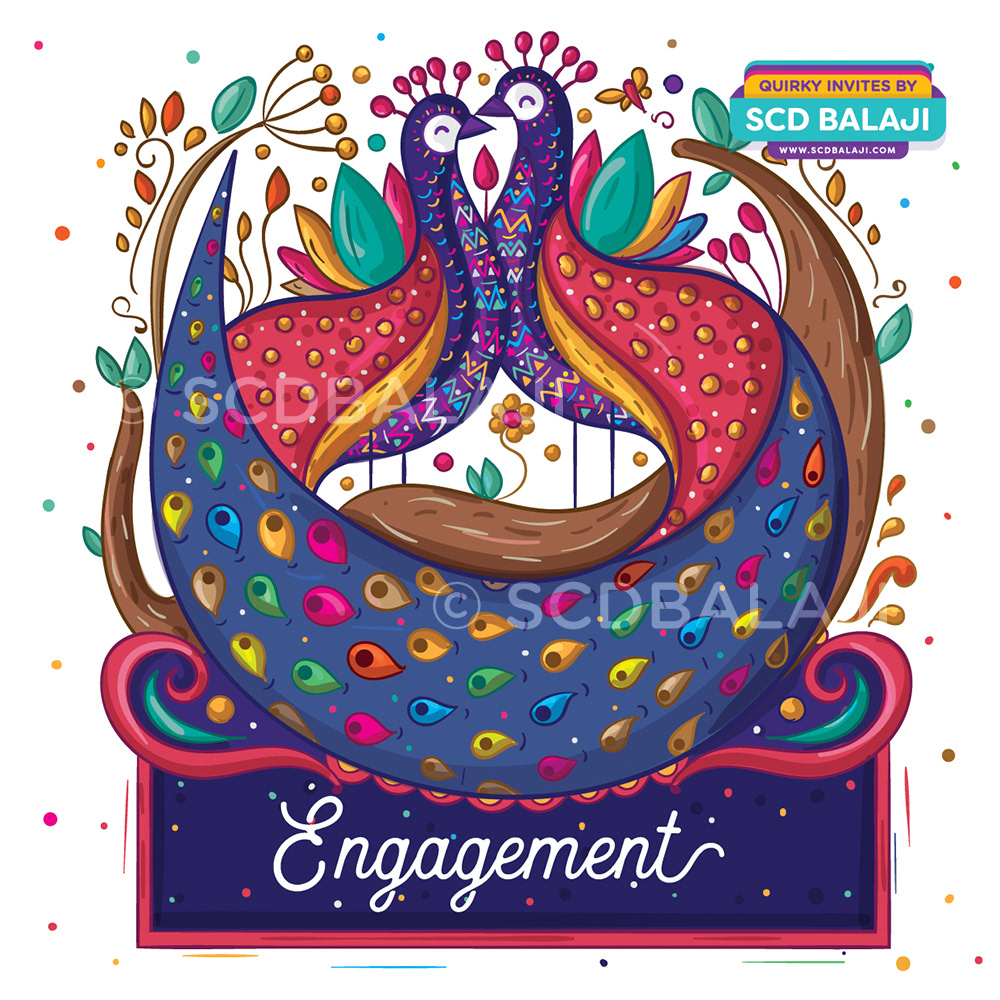 Peacock Wedding Invitation Design - Engagement Invitation Card - Front Wrapper Design