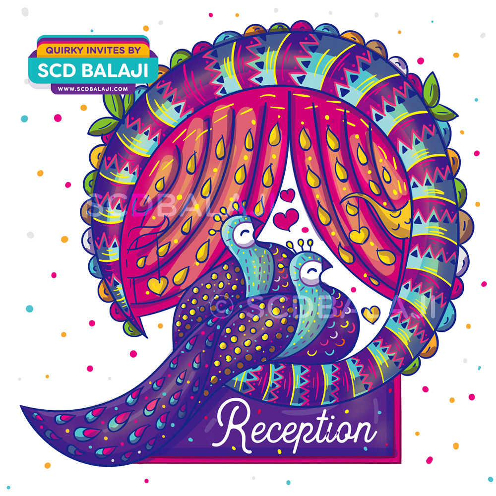 Peacock Wedding Invitation Design - Reception Invitation Card - Front Wrapper Design