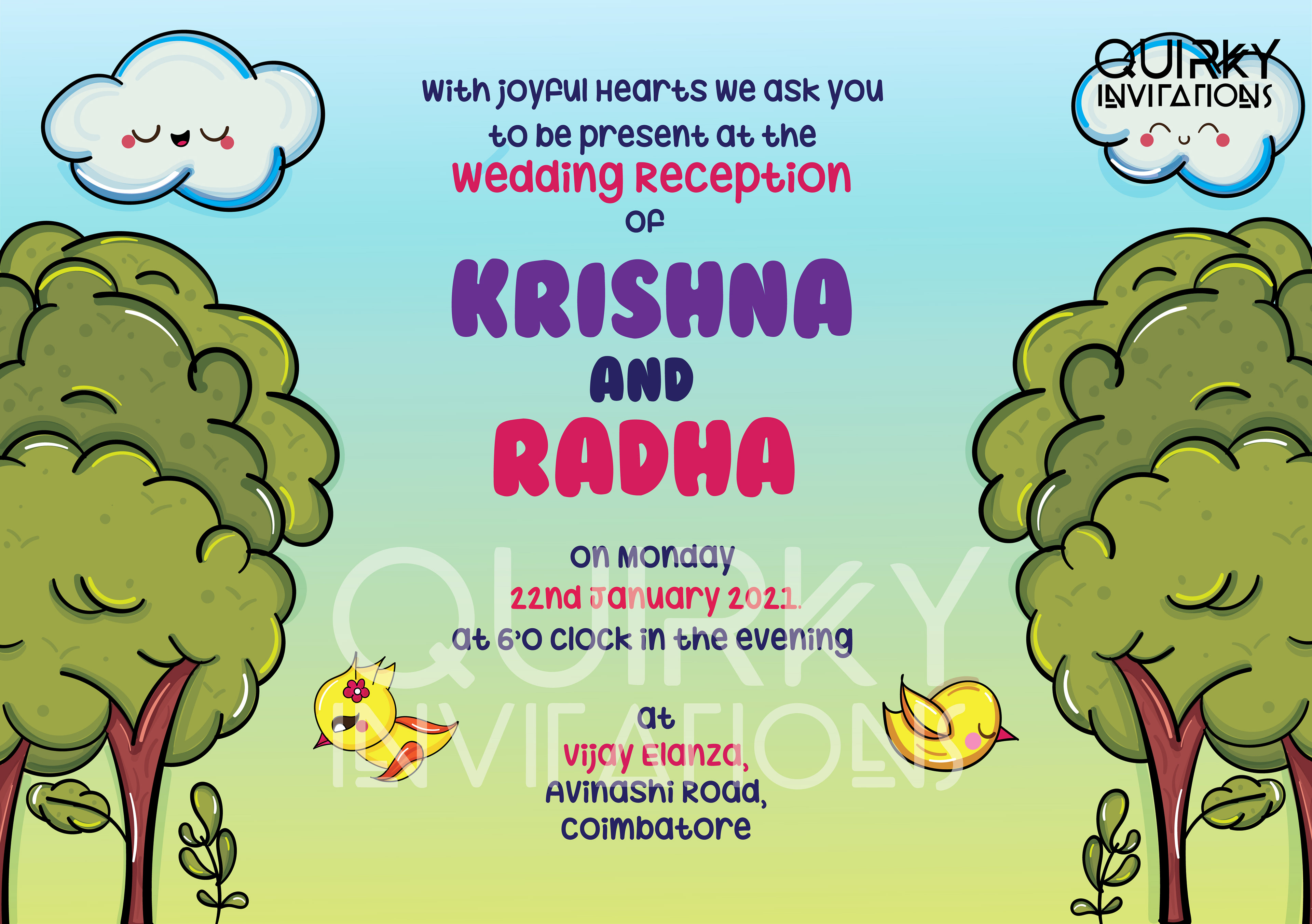 Reception Invitation A5 size, 2 page card (Front & Back)