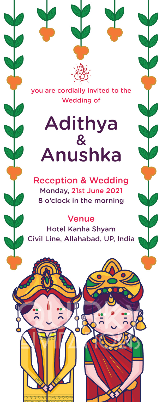This simple yet elegant invite portrays a cute couple dressed in traditional Odisha Wedding attire. As you stand with your soulmate gleaming with joy, inside the mandap as your dear ones cheer your sacred union, it is a memory that’s etched forever.