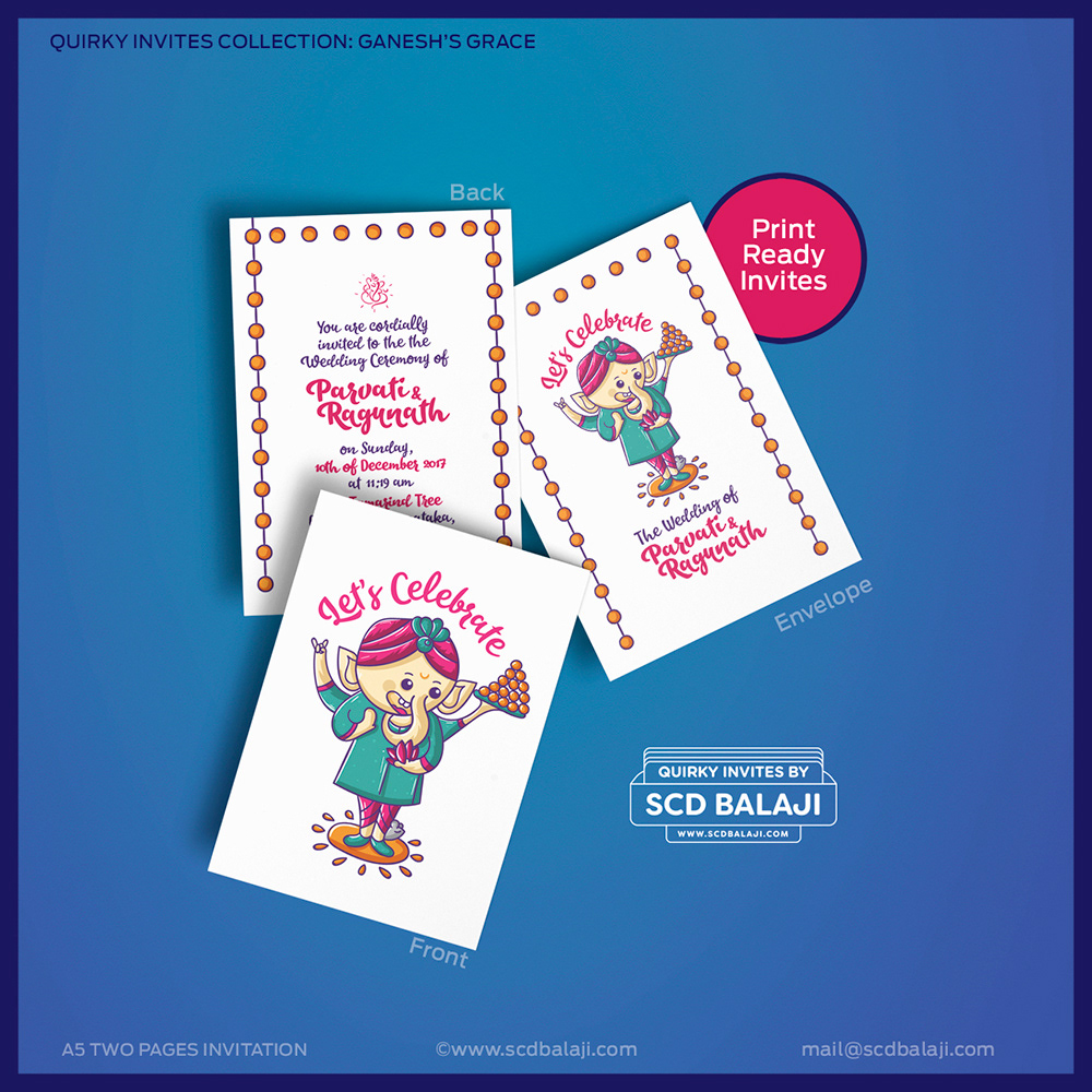 Quirky Suite - Ganesh Wedding Invitation - Four Pages Printed Card + Envelope - Rs. 120/-