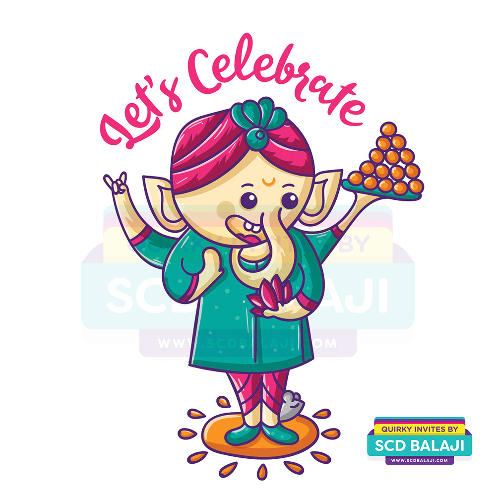Ganesh Pooja - Indian Wedding Invitation Illustration - Quirky Suite