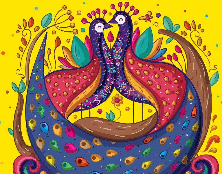 Kalamkari Indian Folk Art Wedding Invitation Design