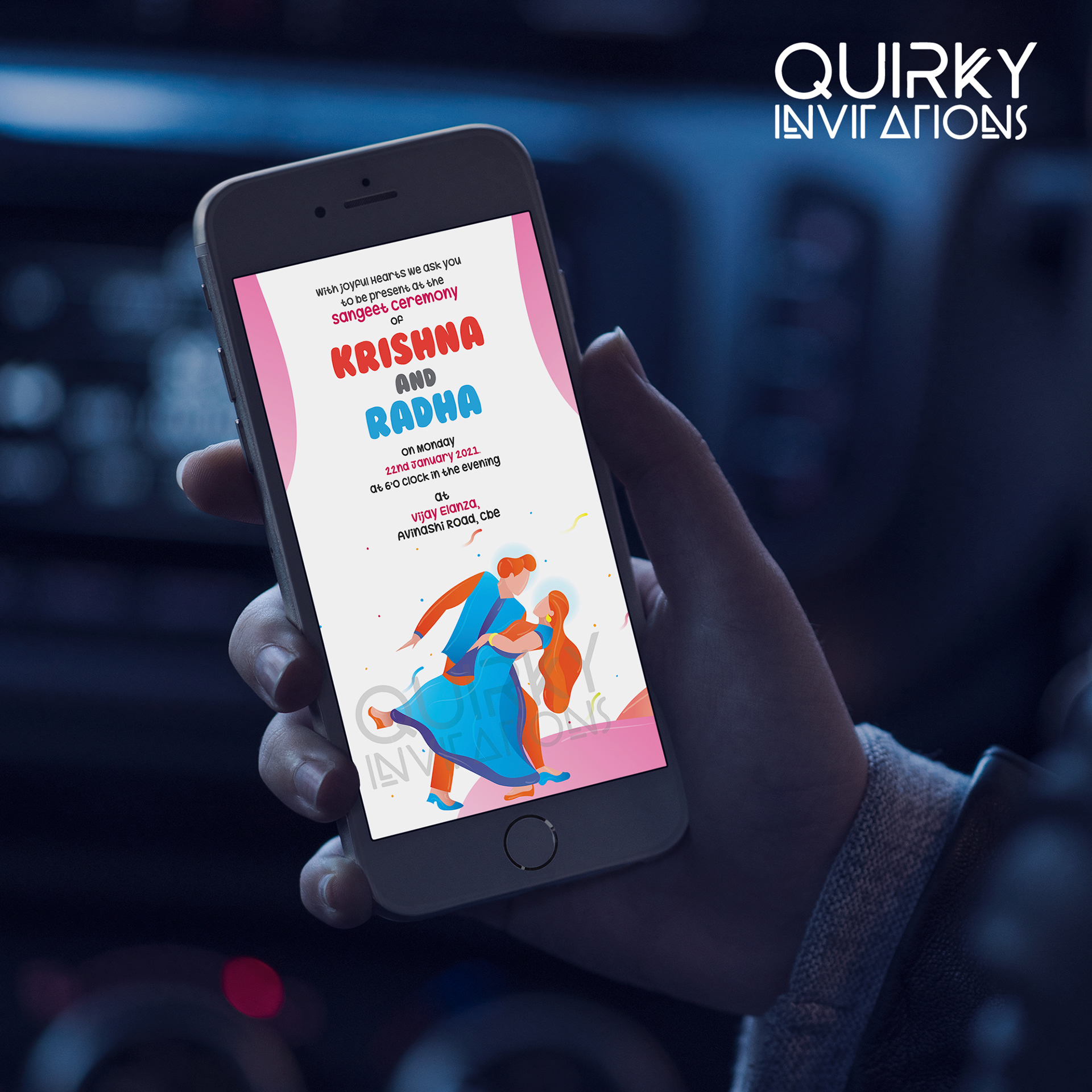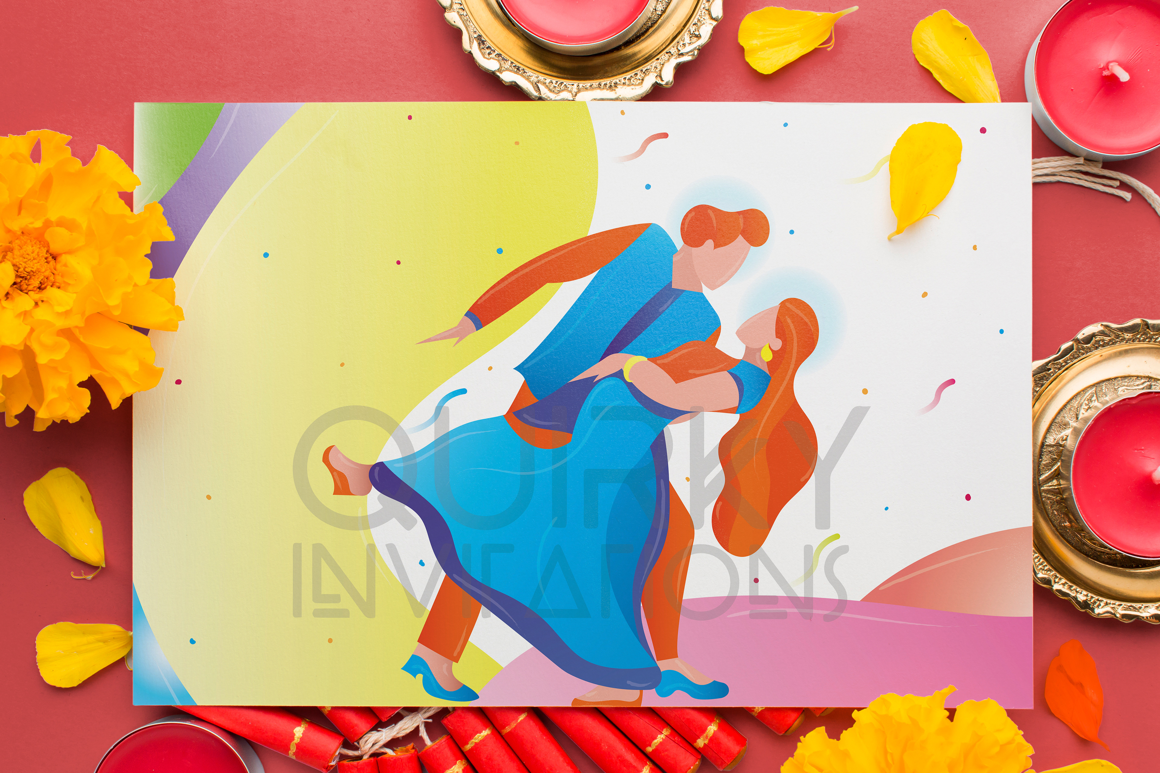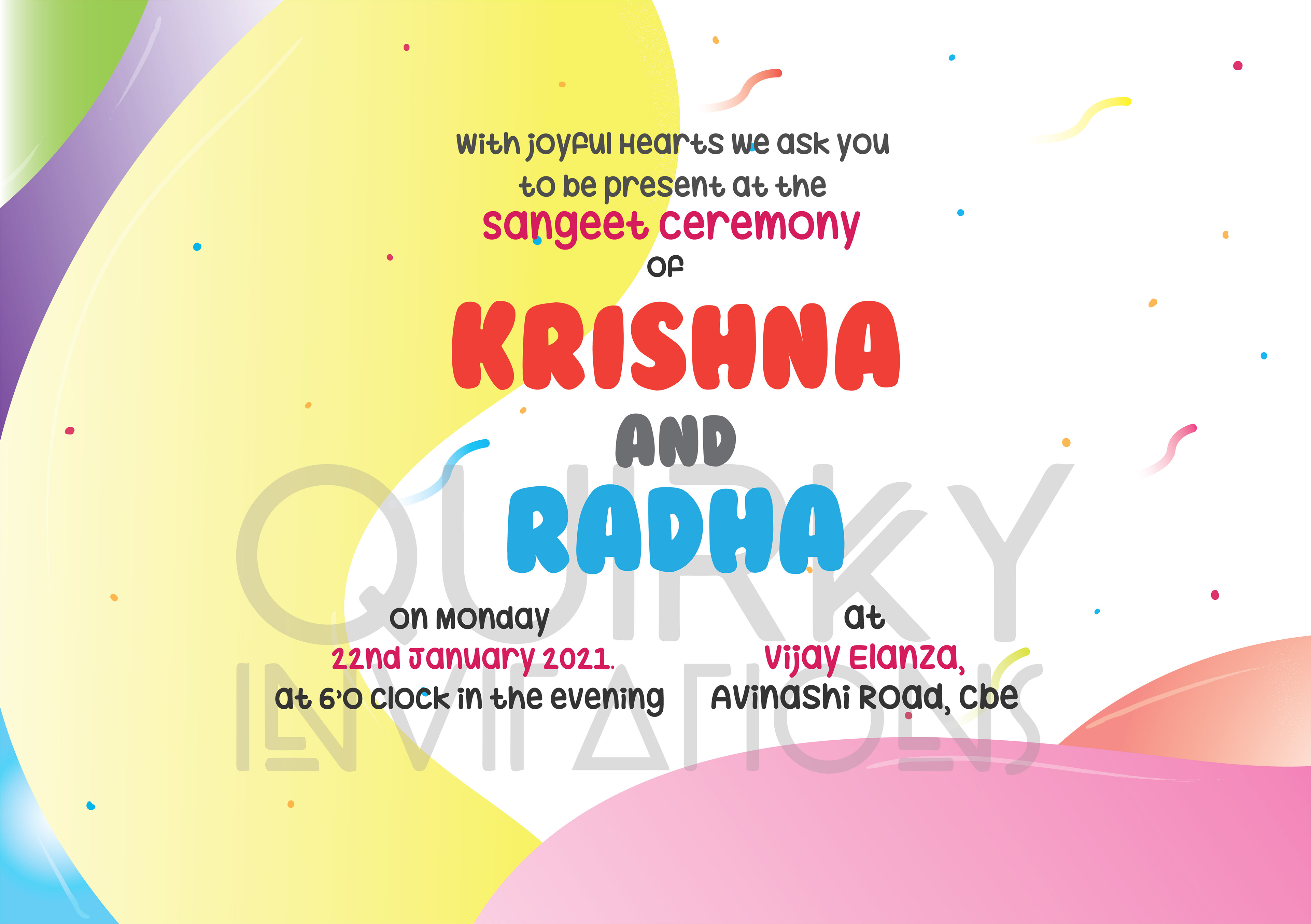 Sangeet Invitation 6.1 x 6.1 Inch size, 2 page card (Front & Back)