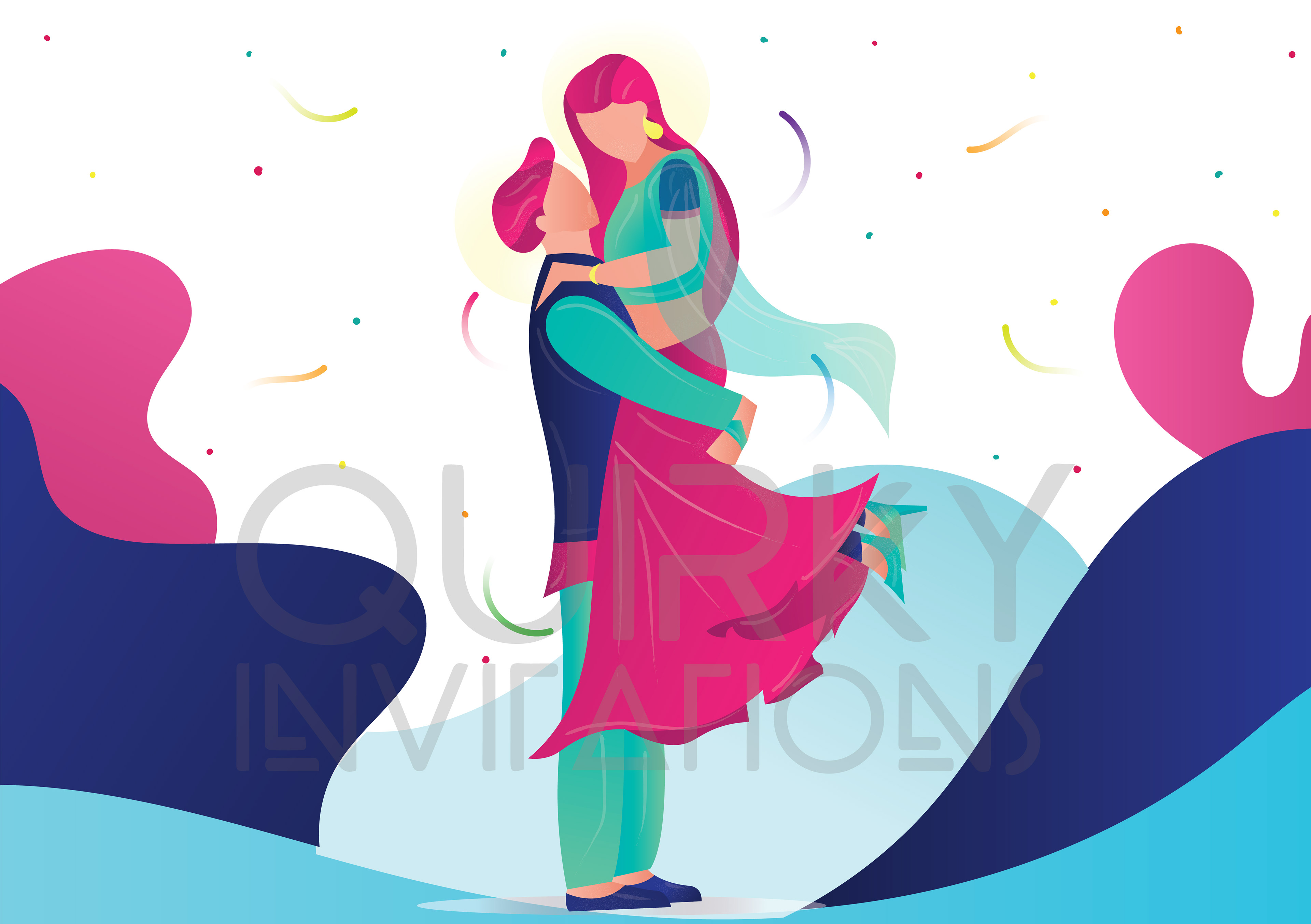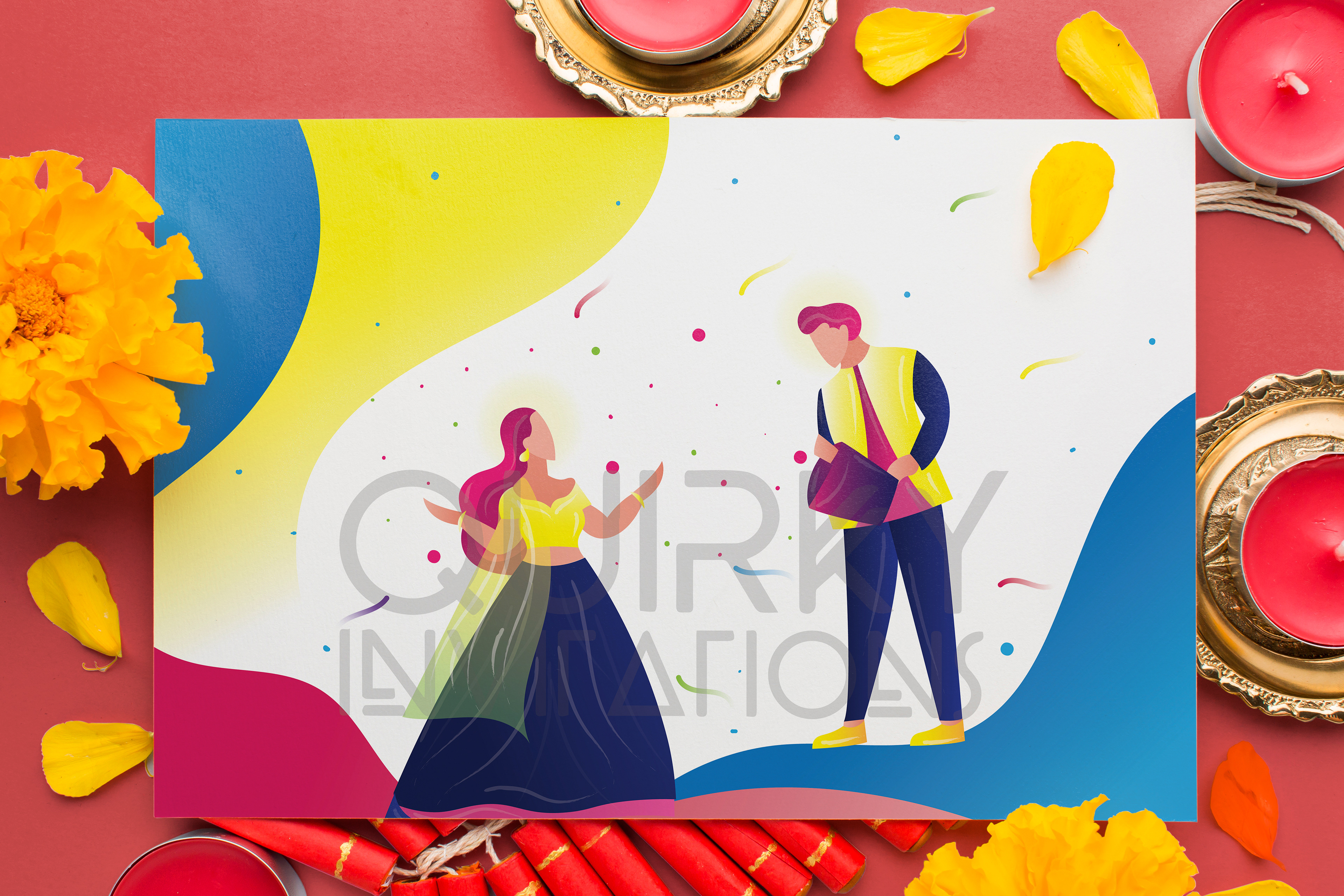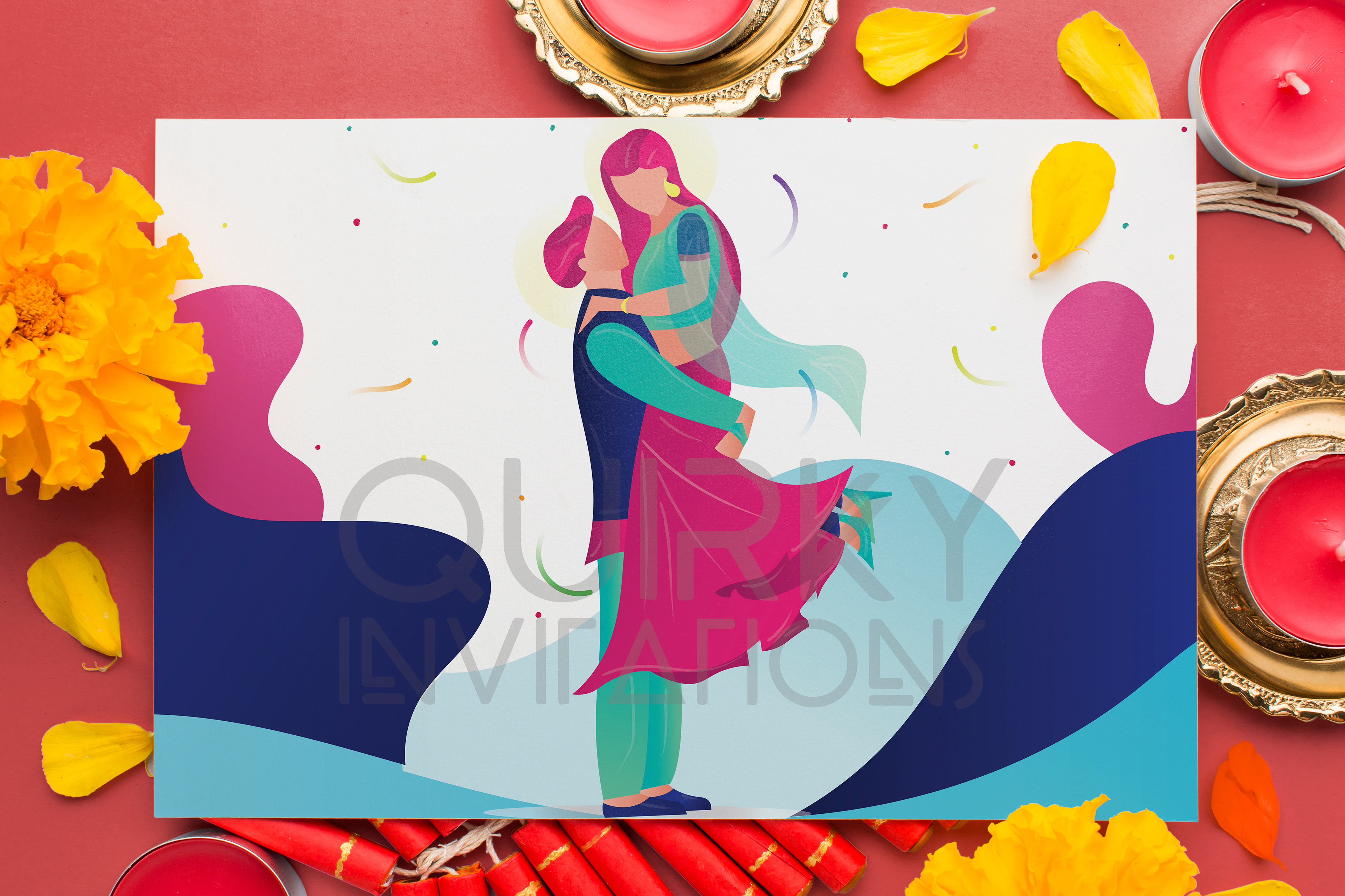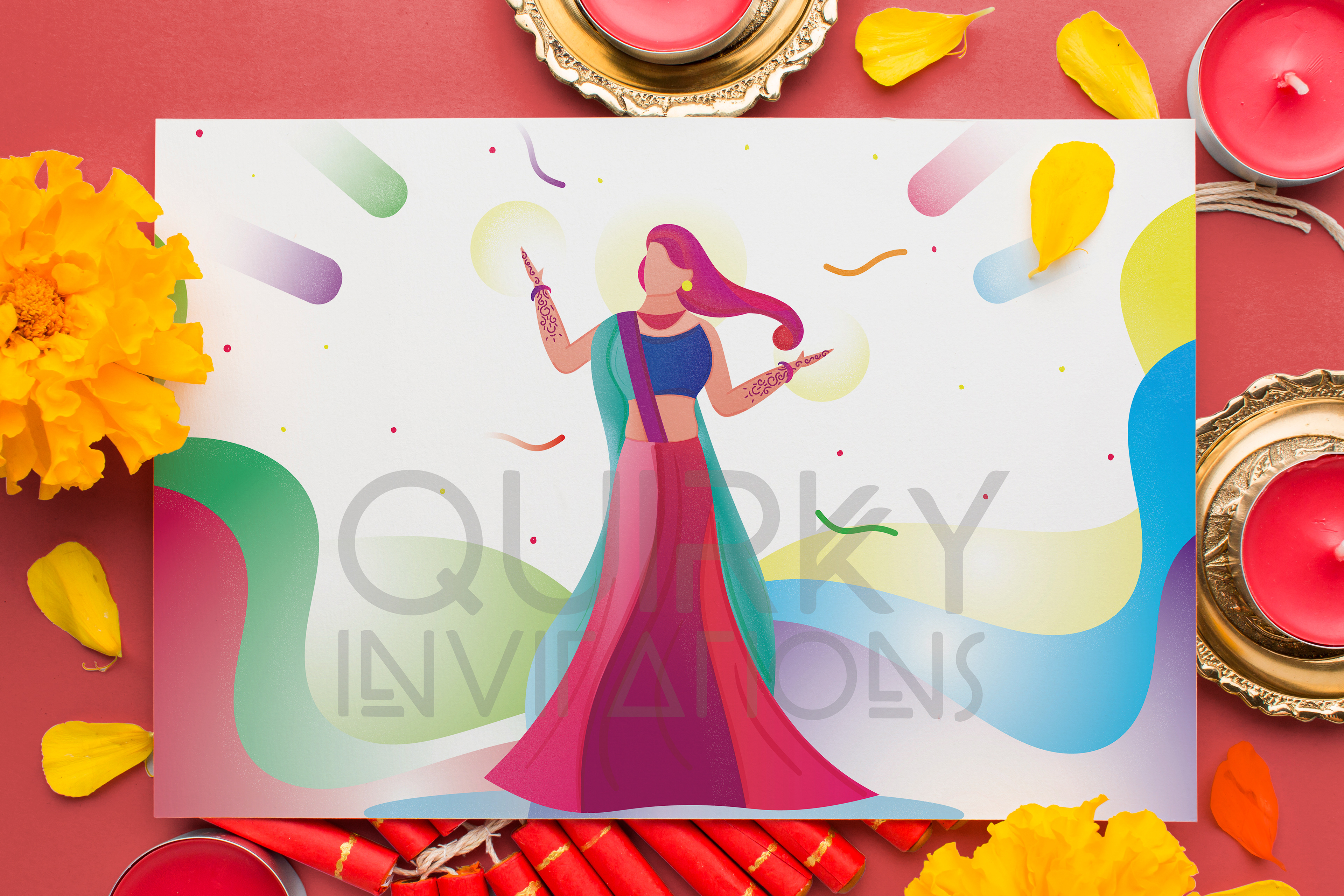 Sangeet Invitation 6.1 x 6.1 Inch size, 2 page card (Front & Back)