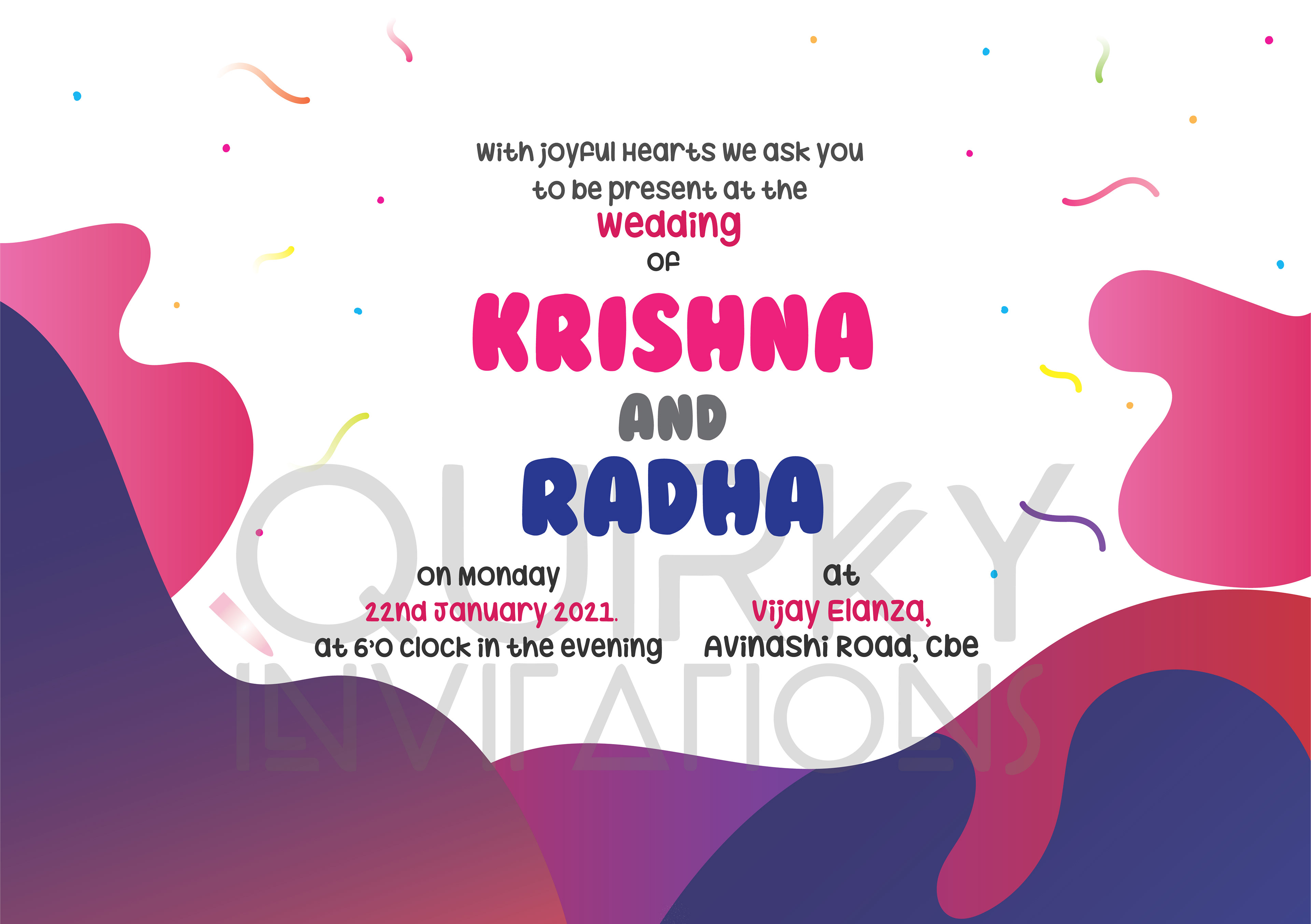Wedding Invitation 6.1 x 6.1 Inch size, 2 page card (Front & Back)