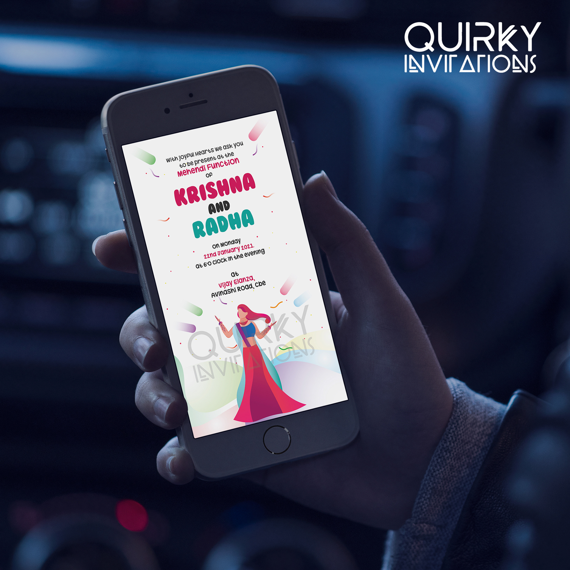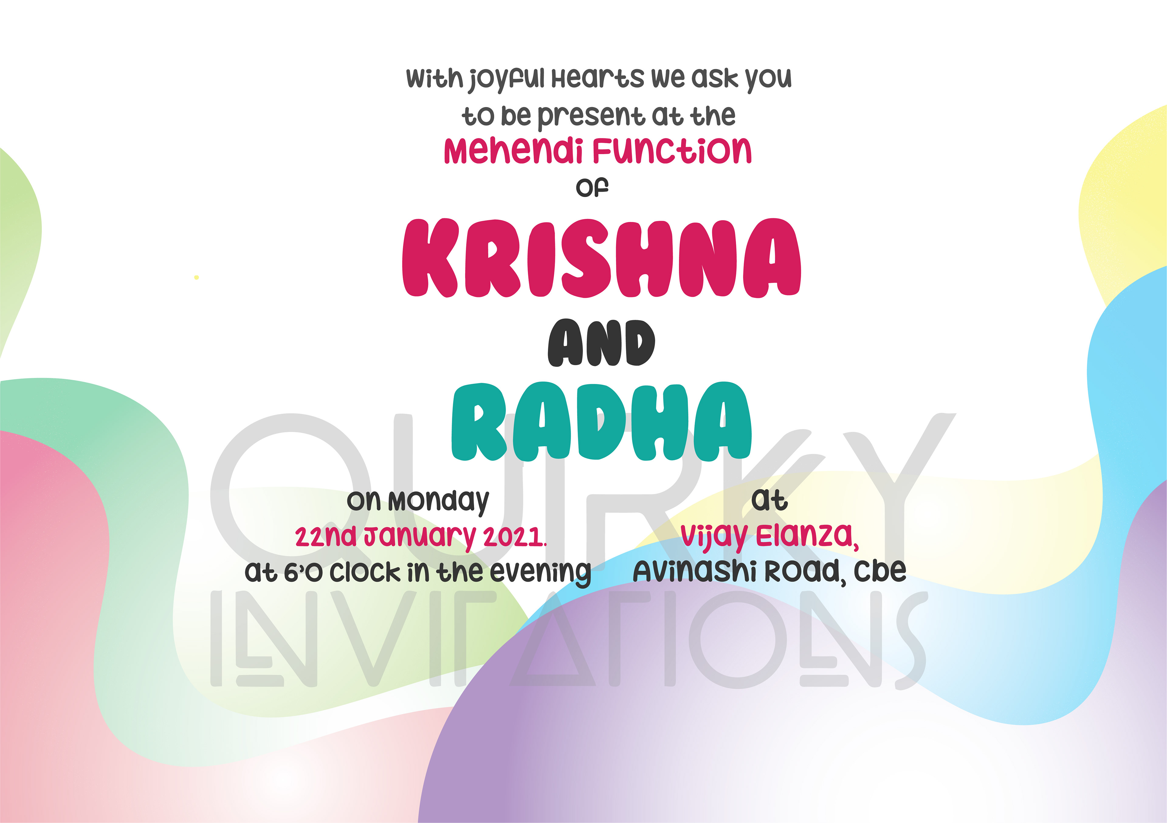 Mehendi Invitation - Square size, 2 Page Card (Back side) | Rs.50/- per card + Rs.20 per envelope
