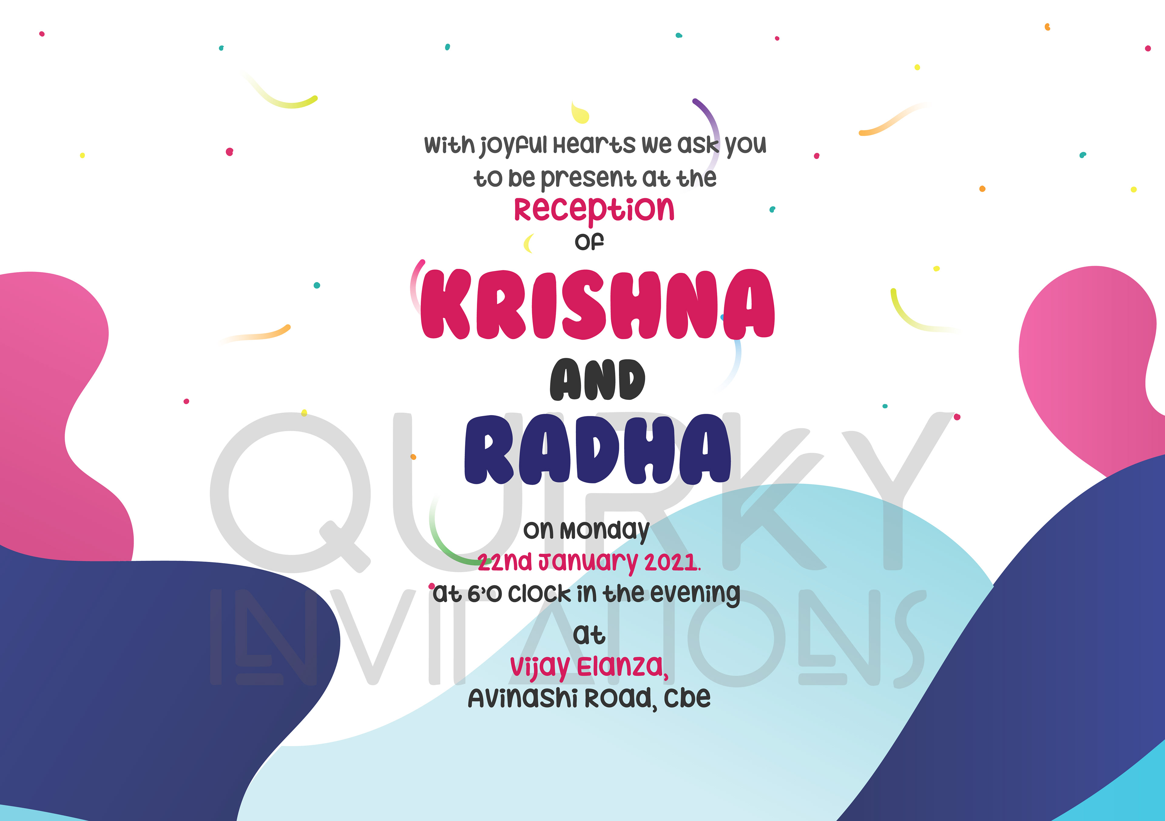 Reception Invitation - Square size, 2 Page Card (Back side) | Rs.50/- per card + Rs.20 per envelope