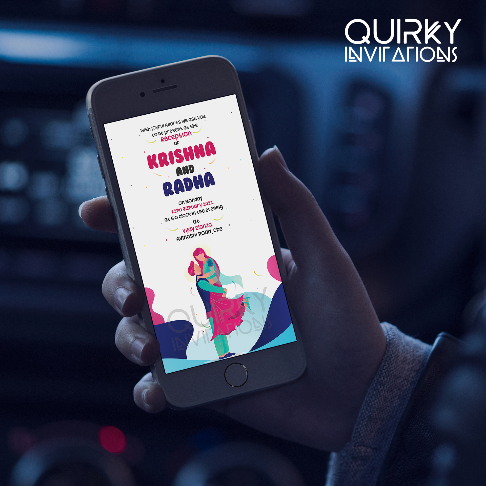Reception Invitation - Square size, 2 Page Card (Front side) | Rs.50/- per card + Rs.20 per envelope