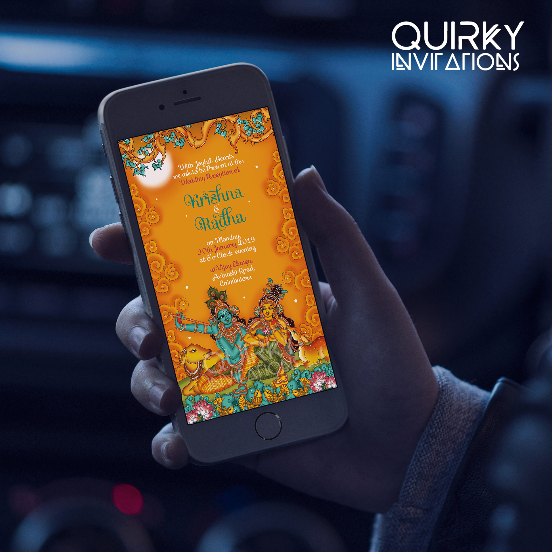 Kerala Mural Style - Radha Krishna Wedding Invite