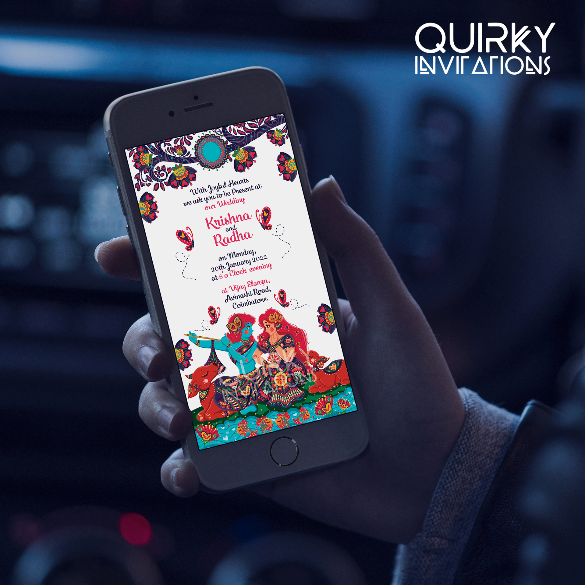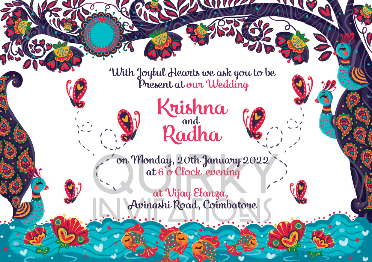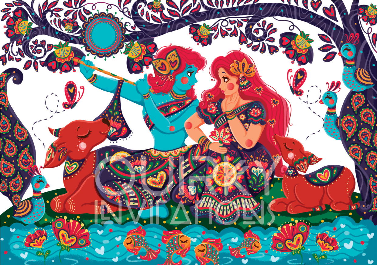 Polish Folk Art Style - Radha Krishna Wedding Invite