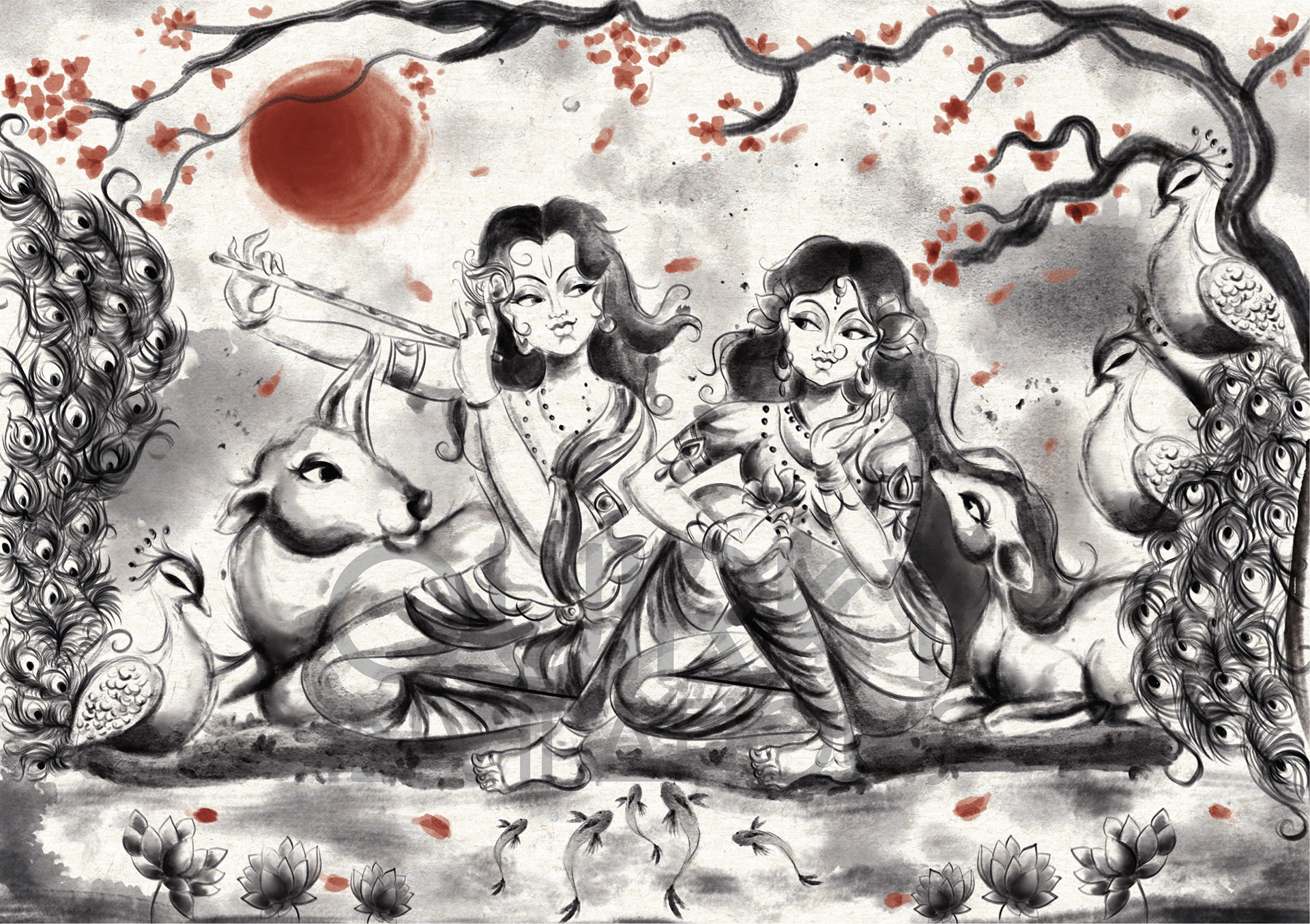 Sumi-E Style - Radha Krishna Wedding Envelope - A5 size, Rs.35 per envelope